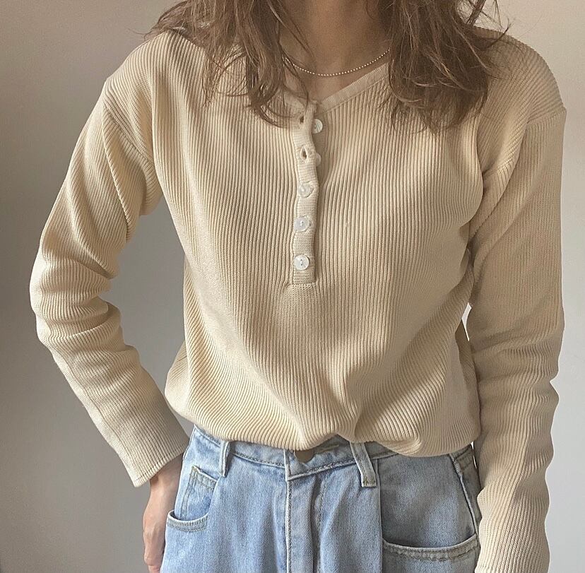 伸縮性のあるリブ素材で、無駄のないナチュラルシンプルなデザインが雰囲気のある一着です。