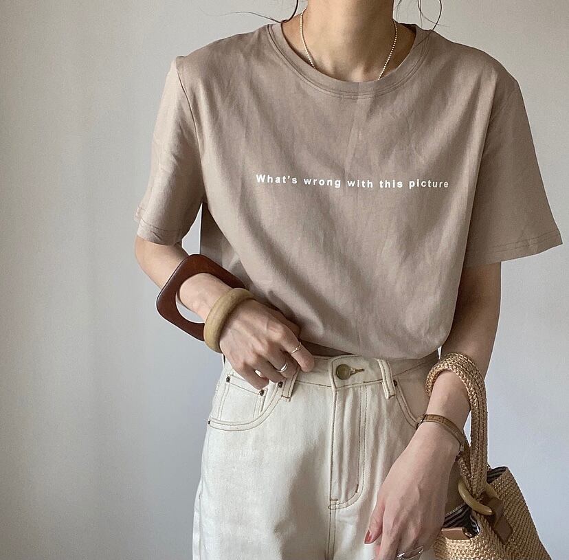 小さめのロゴデザインがコーディネートのアクセントになり、インナーなどにも着回しやすいロゴデザインに。開き過ぎないネックラインが旬な印象になり